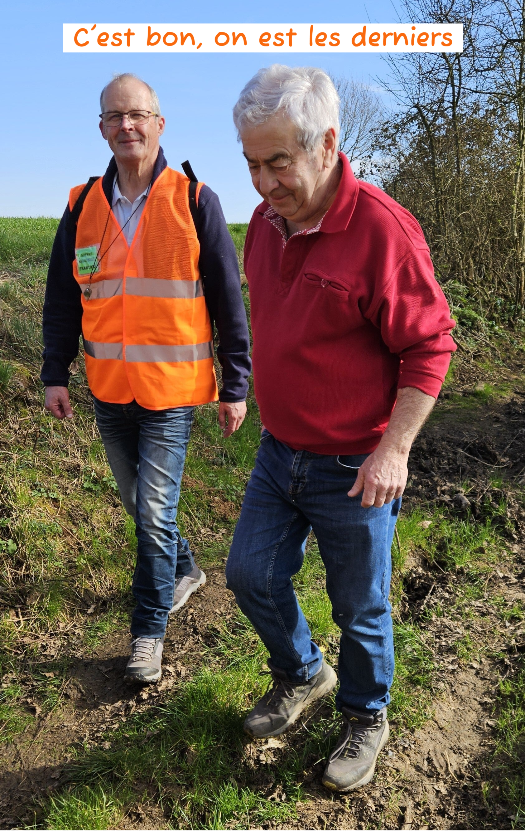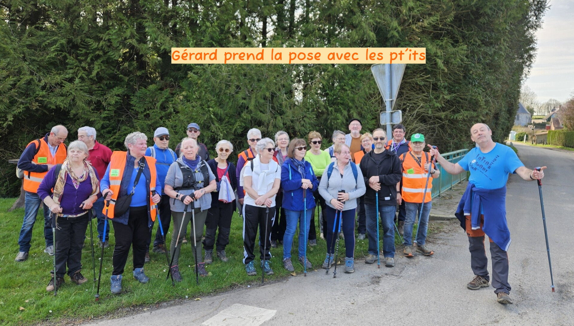 Après 2,5 km, à l'entrée du bourg de St Mards, le groupe se divise en 2Jean-Pierre et Patrick emmènent un groupe de 20 pour le circuit court de 5km
